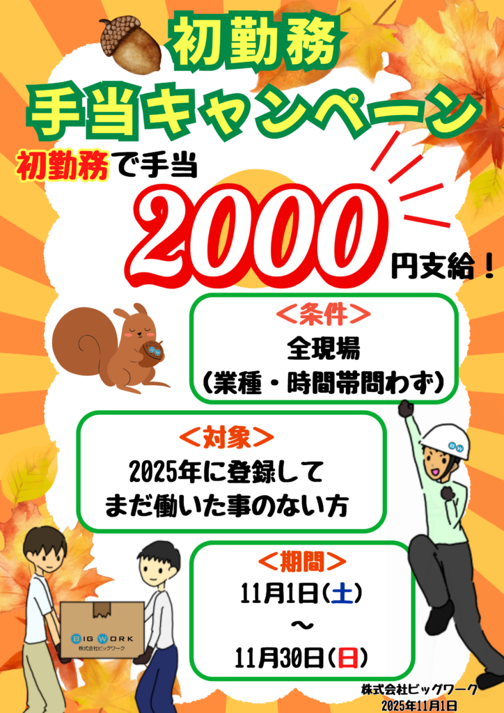 【11月】初勤務キャンペーンを開催いたします!