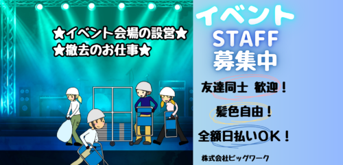 【会場設営】音楽ライブ・スポーツイベントの軽作業スタッフ